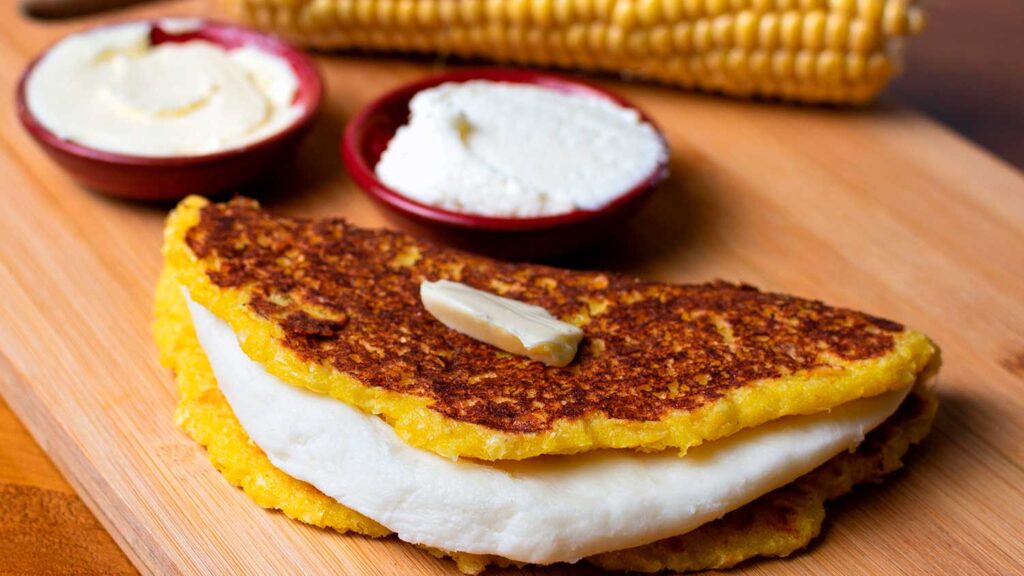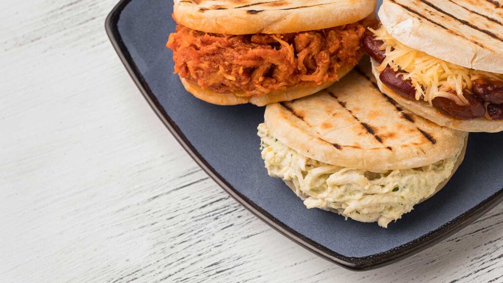 Las arepas son un plato tradicional venezolano y colombiano. Se elaboran con harina de maíz precocida, agua y sal, formando una masa que se cocina a la parrilla, al horno o frita. Las arepas se pueden rellenar con una variedad de ingredientes como queso, carne, pollo, aguacate, frijoles negros, entre otros.